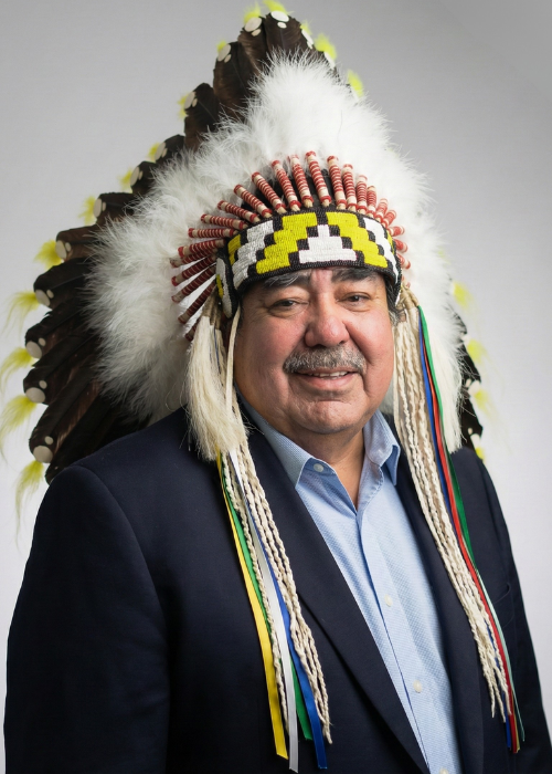 Chief Thunderbird is depicted by the yellow spread eagle. The Plains Cree name is Okimaw-Piyasiw. Helper of the Creator. Giver of cleanliness. Giver of Life. Giver of Water. Giver of Growth.